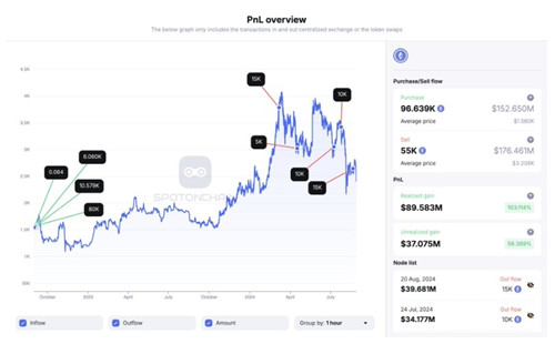 自7月25日以来,这名巨鲸两次向Kraken存入了7,390万美元的ETH(2.5万枚),且在这两次出货后,ETH价格分别下降了7.6%和2.5%。目前该巨鲸仍持有4.16万枚ETH,预计其总利润为1.27亿美元。