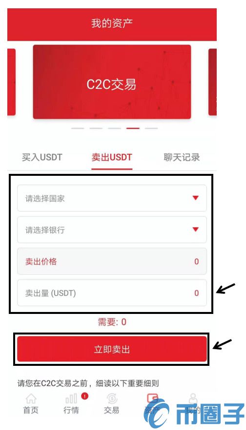 1. 登陆账号后,请前往“资产”栏目中的“C2C交易”。