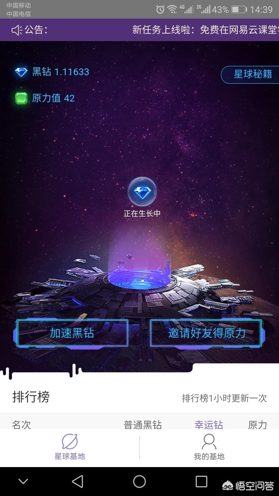 2、网易星球 错过了过年的领原力的活动,每天增加2个原力,也可以做任务,今天是网易云课堂学习区块链,但是学习了也一直没加原力,还在摸索着,玩了3天了吧,1.1个黑钻。