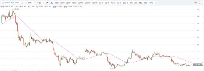 由于EOS在低位持续盘整,如果不能向上尽快突破7.6,那么,不排除进一步下跌的可能性。