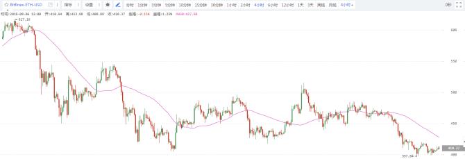ETH跟随BTC走势方向,大幅下挫,创出新低,最低突破400,到397,目前回到400之上。
