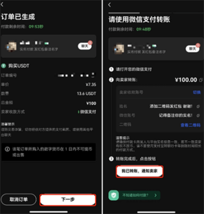 5.转账完成后,你需要回到火必app交易所页面,并点击【我已转账,通知卖家】。卖家在确认收到款项后,你购买的数字资产将会立即发放到你的账户。你可以在【资产】栏中查看并确认你的数字资产。