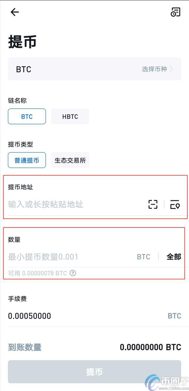 提币数量可根据个人情况而定,但必须满足最小提币数量要求,数量框中提示的最小数量不包含手续费。手续费由矿工收取,视挖矿难度调整,以界面显示为准即可。