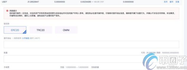 在火币找到提币功能,提币功能里面需要填写提币地址,这个提币地址就是指的是币安的充币地址。