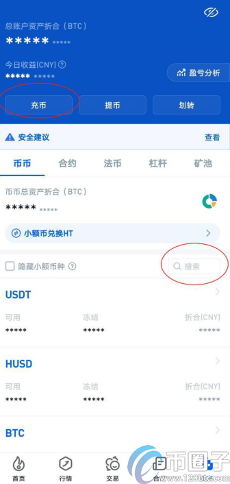 1、打开火币APP【火币PRO】,点击【资产】,在资产界面点击左上角的【充币】,或者直接在搜索框中搜索想要充值的币种。