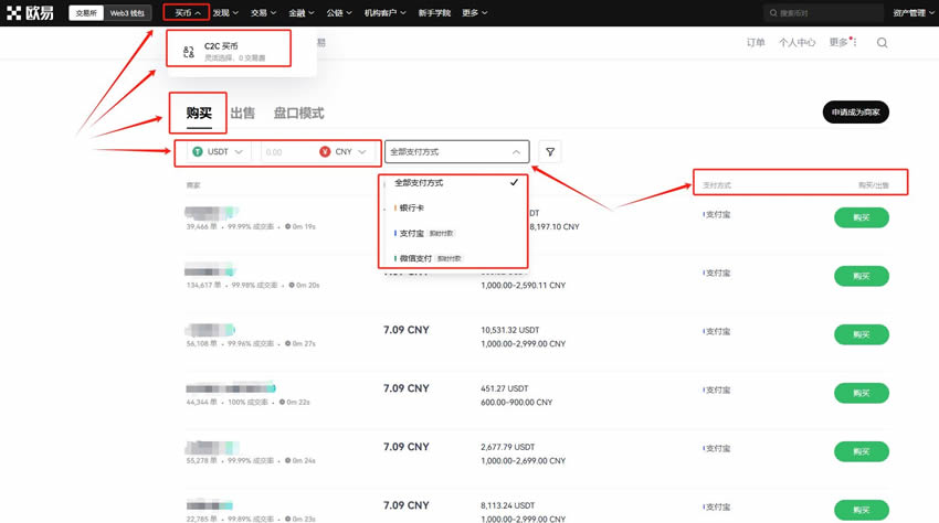 在进行交易前,需要拥有USDT(稳定币)。可在C2C买币进行交易,根据需求选择合适商家,点击“购买”,而后根据提示进行付款、等待商家放币(若是长时间没有收到币种,可联系客服进行处理)。