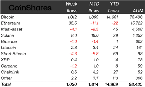 截至5月29日,随着机构和长期投资者的积极入场,比特币(BTC)投资产品上周的流入额超过了10亿美元。据行业数据提供商CoinShares的最新报告,今年迄今为止,比特币的总流入额已经达到了约146亿美元,这主要得益于机构和长期投资者对比特币交易所交易基金(ETF)的现货投资热情不断升温。