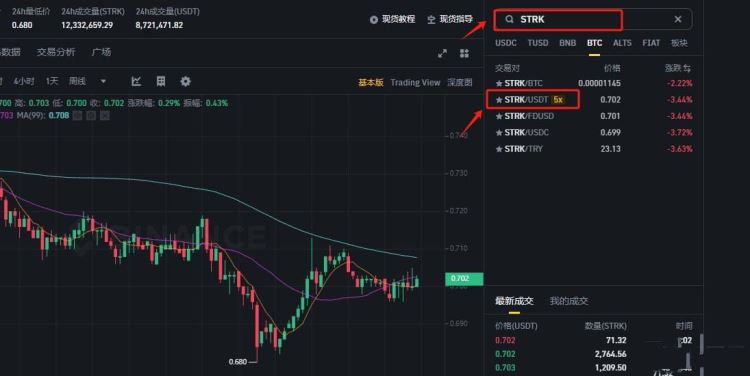 8、搜索币种简称【STRK】,选择【STRK/USDT】交易对