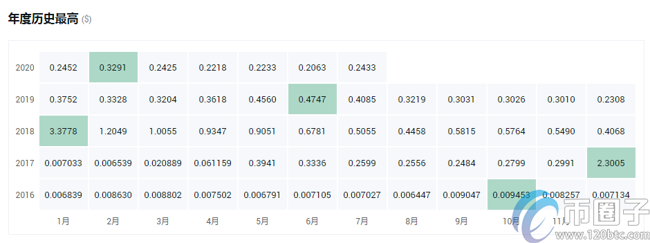 6.2018年,瑞波币开盘价最高3.3778美元,最低0.2631美元;