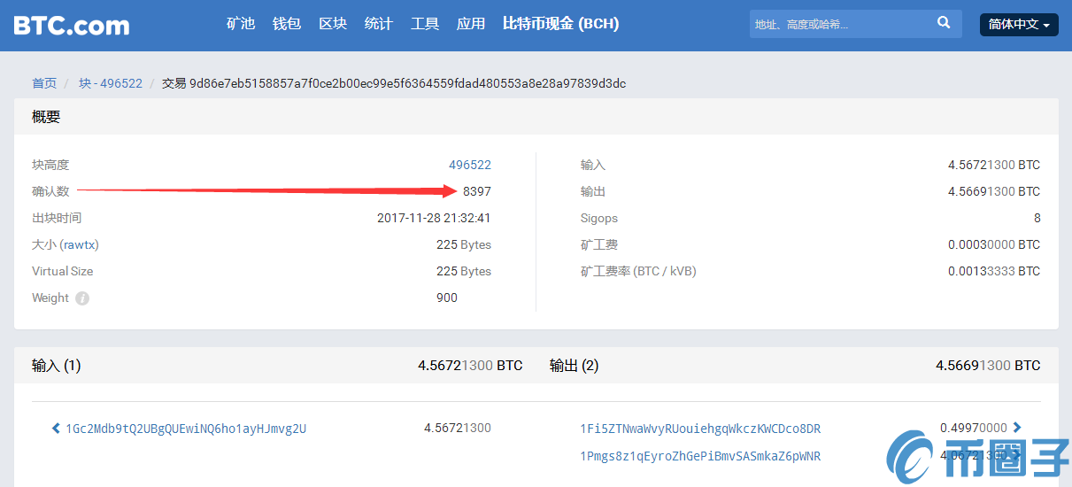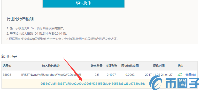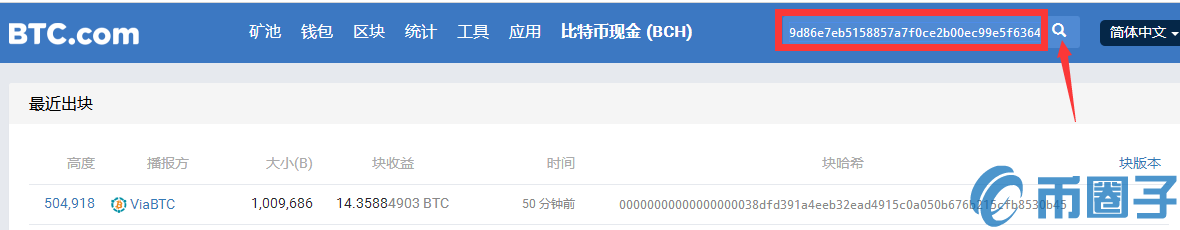 把复制的txid粘贴到图中红框,点击放大镜开始查询。
