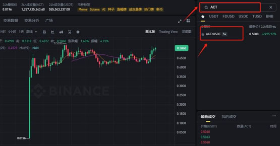 8、搜索币种简称【ACT】,选择【ACT/USDT】交易对