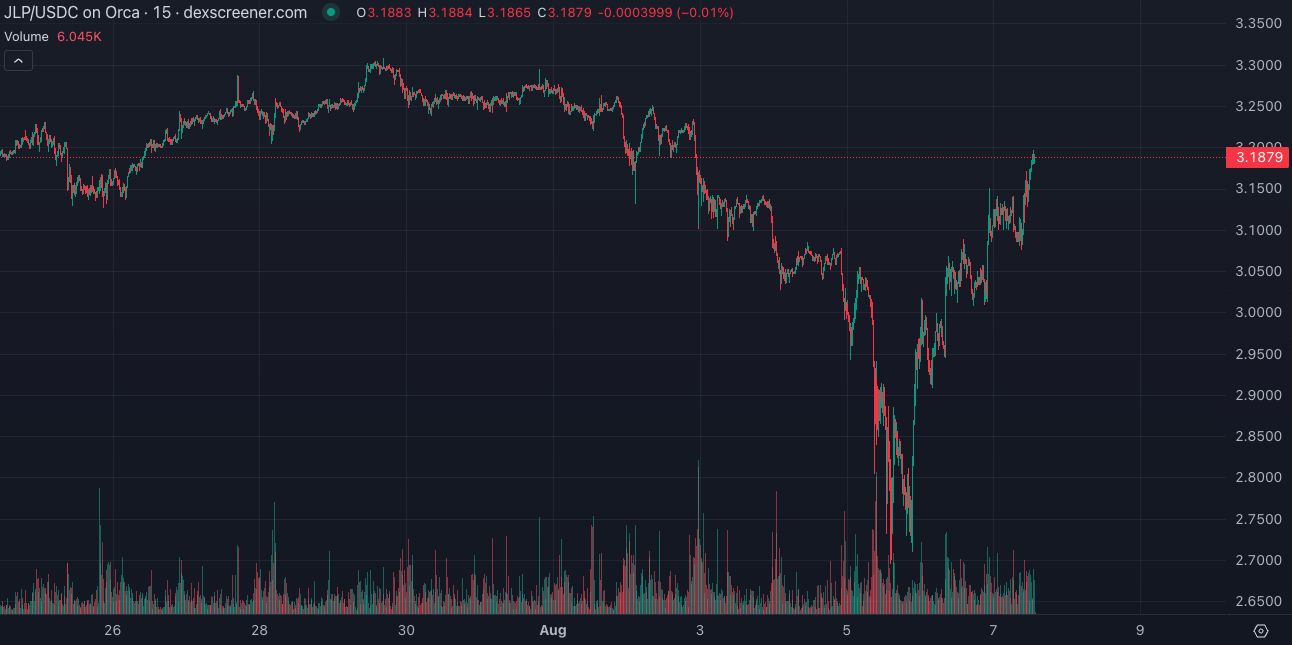8 月 5 日大盘暴跌,加密资产全面崩盘,以太坊抹平年内涨幅,SOL 也一路下跌触及 110 美元。然而,在底层资产都是比特币、以太坊和 SOL 的情况下,JLP 跌幅却较底层资产小,不少人开始好奇,为什么 JLP 这么抗跌?JLP怎么玩?JLP作对了什么?下面就和币圈网小编=一起详细了解下吧!