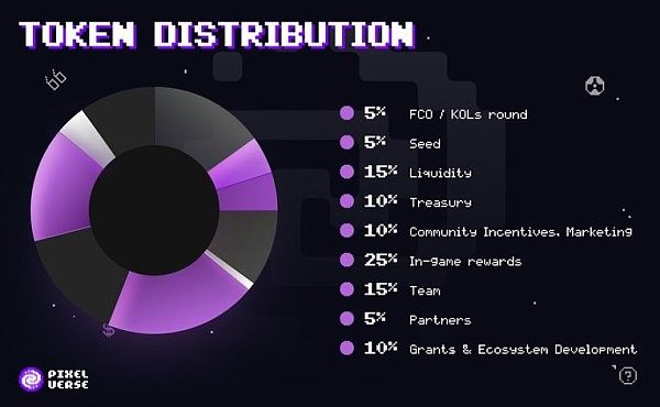 PIXFI 代币的总供应量为 50 亿,采用 ERC-20 代币标准。Pixelverse 的创建者还透露了将其引入开放网络 (TON) 的计划。