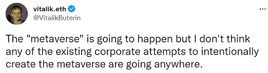 今年7月底,以太坊联合创始人V神表示,“元宇宙”将会发生,但他不认为当前市场上刻意创建元宇宙的公司尝试会获得成功。的确,元宇宙的实现还需要考虑技术方面的支持。