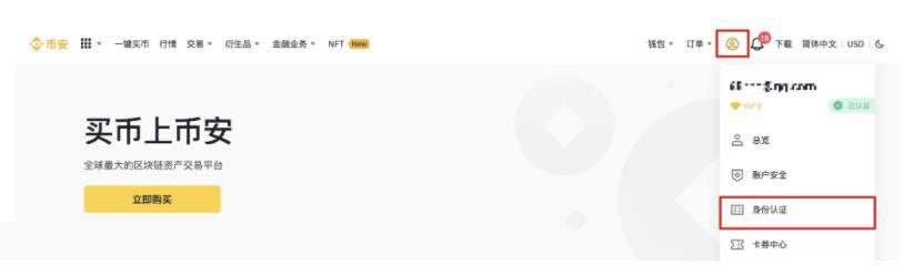 2、您可以通过【用户中心】-【身份认证】进行身份认证,在该页面可以查看当前认证级别,它决定了您的账户在币安的交易限额。如需提升额度,请依次完成各个级别的身份认证。