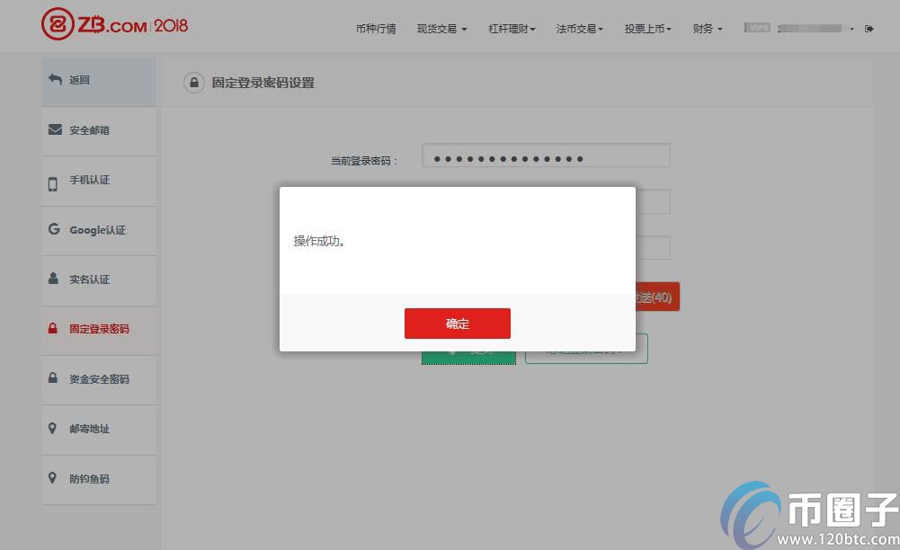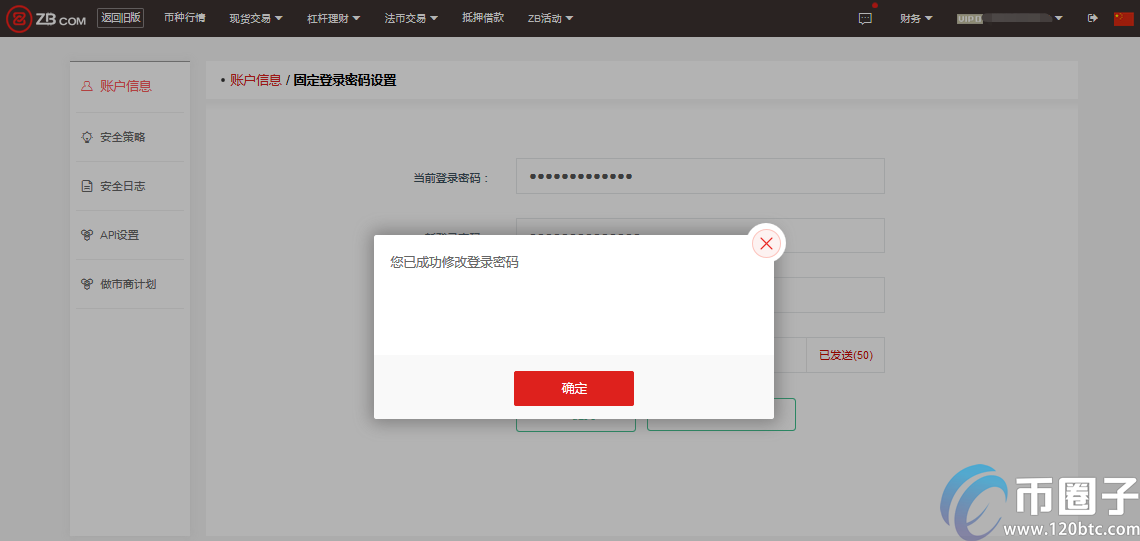 (1)打开ZB官方网站登录账户,在“账户信息”页面。选择“固定登录密码”中的“修改”。