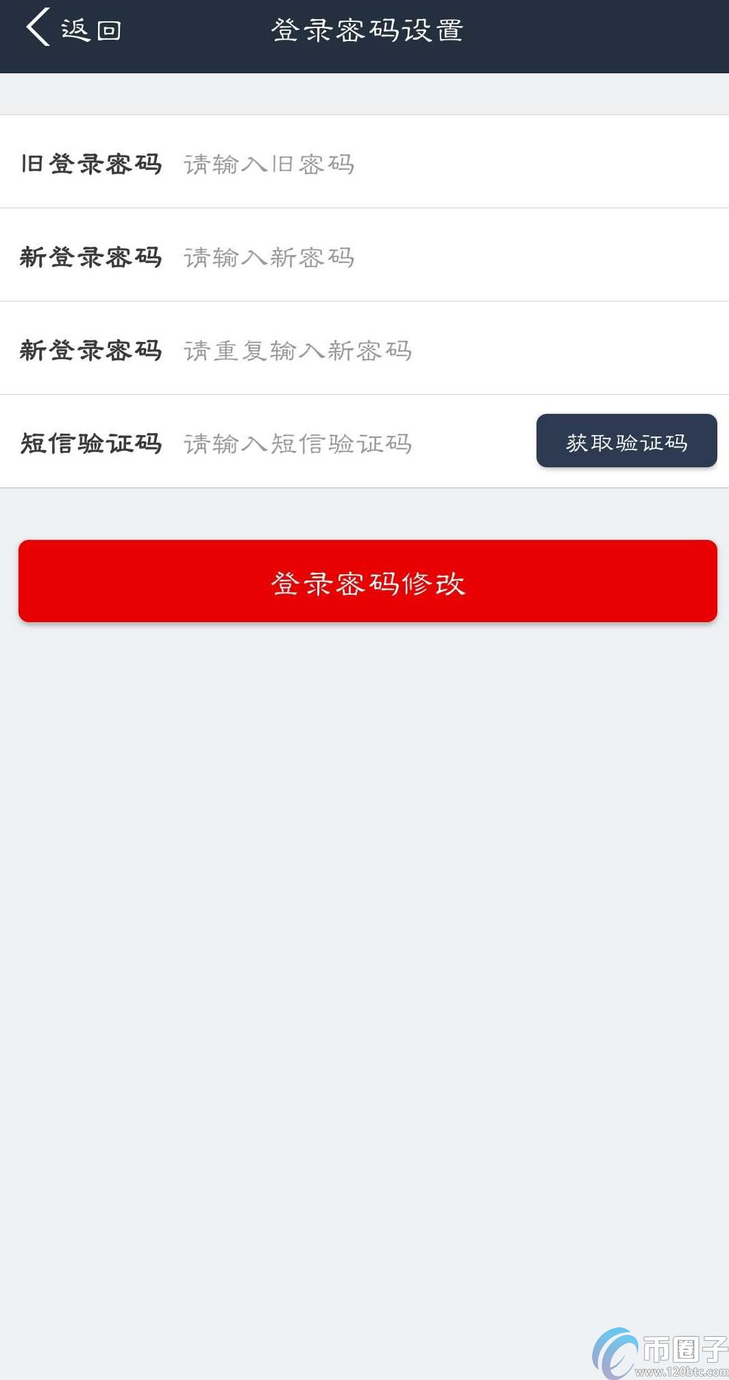3、登录密码设置界面,填入旧密码新密码。获取输入验证码,点击“登录密码修改”。