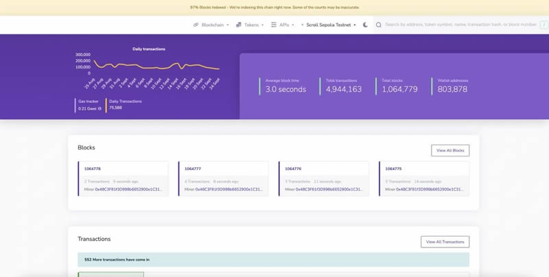 - 接收代币:通常情况下,testnet 代币会在很短的时间内发送到您的 Scroll 兼容钱包中。