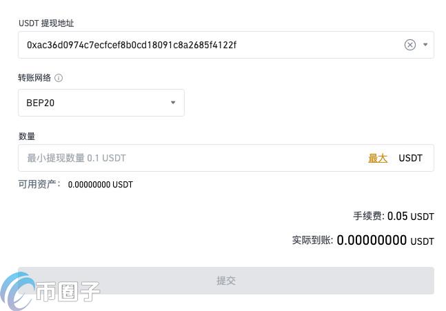 进入币安,提现提现地址填写:智能链钱包地址转账网络:BEP20
