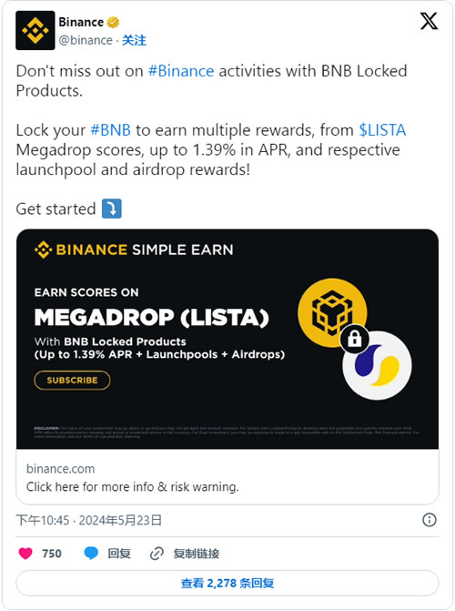 该项目将在币安Megadrop 上线,用户可透过币安获得Lista 空投奖励。此外,币安将于Megadrop 完成后上市LISTA,具体上市计画将另行公告。