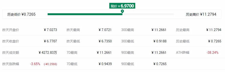 KCS市值7121.35万美元,占全球总市值的0.03%,流通量是8965.94万枚,24小时成交额450.14万美元,24小时成交量566.71万,历史最高价21.3001美元。