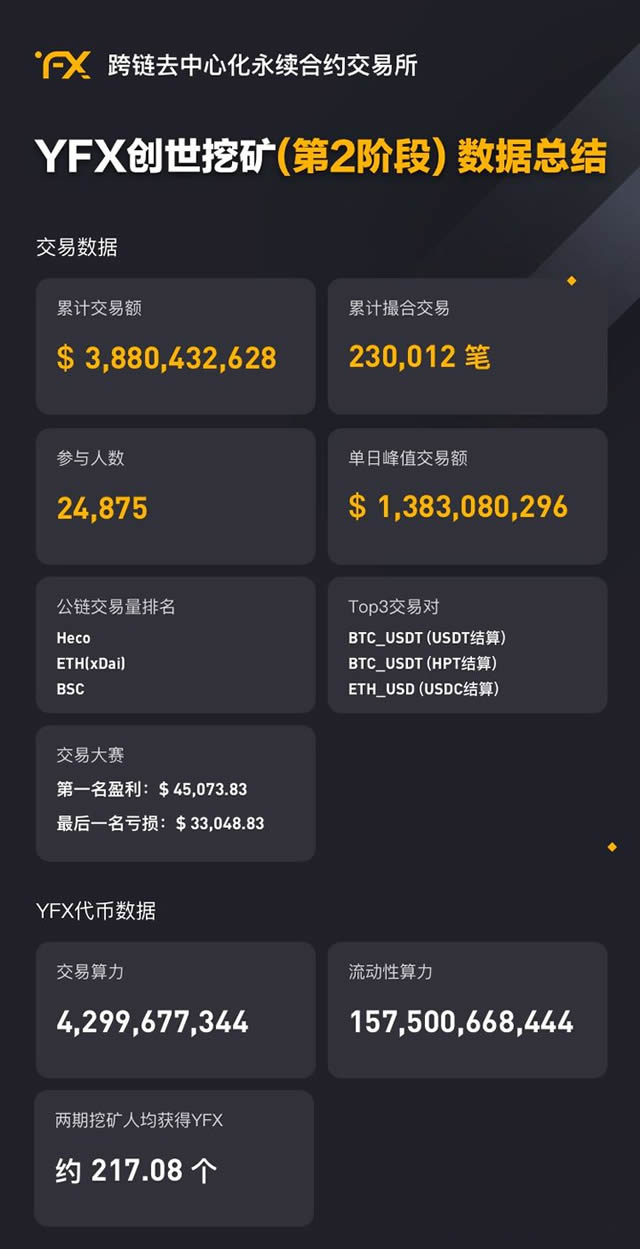 目前YFX创世挖矿第二阶段已经圆满结束,给大家分享下数据。
