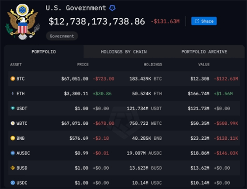 7月30日消息报道,在撰写本文时,美国政府已成为去中心化货币领域的最大地缘政治持有者,其持有的比特币数量超过183,000枚,按当前市场价约66,733美元计算,总价值逼近120亿美元。此外,据Arkham Intelligence数据显示,美国政府还涉足其他加密货币及法定货币,包括持有50,000枚以太坊(价值约17亿美元)、1.21亿新台币(约合2700万美元)、40,000文莱元(约合23万美元)以及价值超过1000万美元的加拿大元硬币。