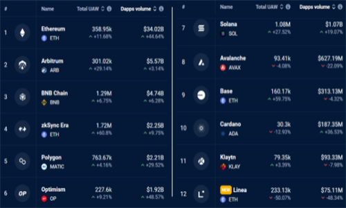 请注意,以太坊 2,231 美元其 Layer-2 扩展解决方案在交易量方面仍然没有受到挑战,在过去 30 天内累计超过 464 亿美元,其中以太坊基础层占该交易量的 73%。相比之下,BSC Chain 同期交易量为 47 亿美元,环比仅增长 6%。然而,在考虑活跃唯一地址(UAW)时,BSC Chain、Solana 和 zkSync Era 处于领先地位。这引发了人们对这些数字是否准确反映事实的疑问。