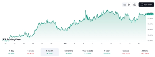 根据TradingView的数据,截至发稿时,比特币的主导率为57.36%,自7月18日以来已上升了4.25%。这一趋势似乎正朝着Cowen的预测方向发展。