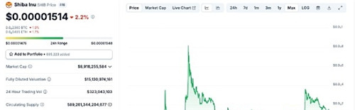 根据 CoinGecko 的数据,尽管 memecoin 的市值仍高达 89 亿美元,但 SHIB 已较其 2021 年 10 月创下的历史高点 0.00008616 美元下跌了 82.4%。