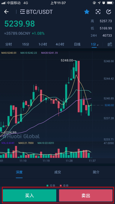 3. 点击交易对后,就可以进入这个交易对的交易页面: