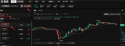 9.搜索币种简称,FIL点击FIL/USDT交易对,可以看到FIL实时行情。