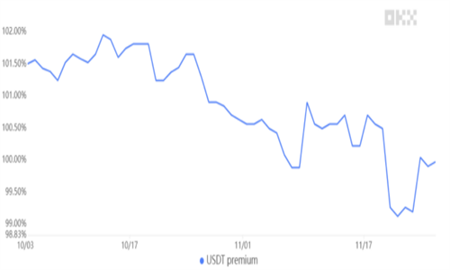 自 11 月 20 日以来,USDT 一直在打折交易,这表明要么是清算加密货币的强烈愿望,要么是监管担忧加剧。无论哪种情况,它都远不是一个积极的指标。此外,最后一次 1% 的正溢价发生在 30 天前,这表明散户交易者对近期涨至 38,000 美元的走势并不特别热衷。