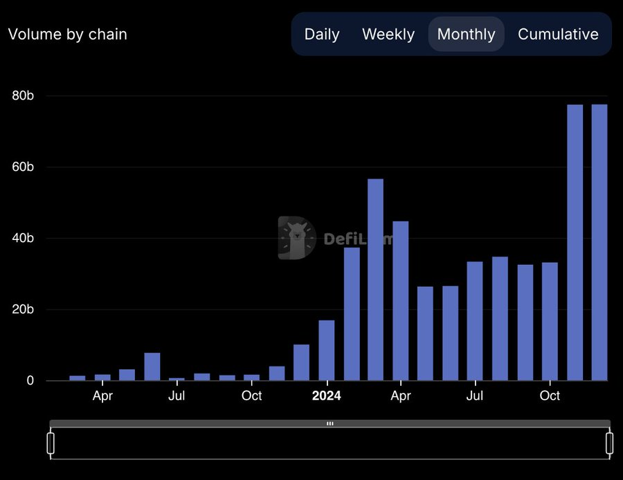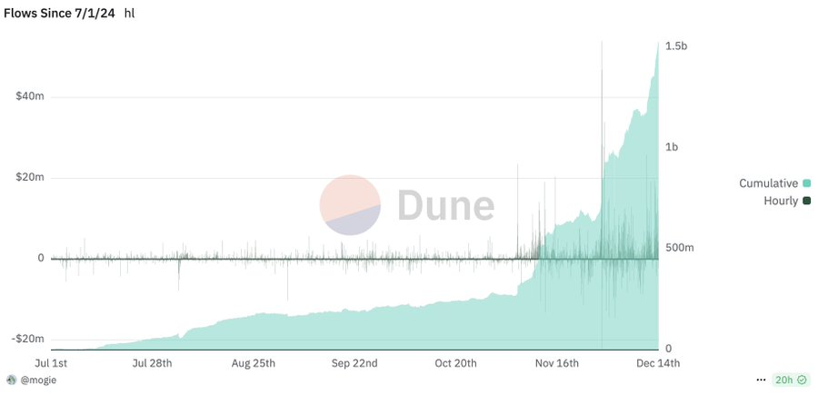 Hyperliquid在近24小时内 16,993.74%,近7天内 15,856.51%。