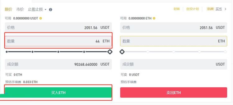 8、填写买入数量,点击【买入ETH】即可完成ETH币交易