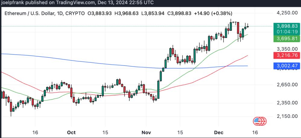 随着以太坊(ETH)价格在3900美元上方巩固,交易员正关注其年底前可能出现的飙升,这种现象被称为“圣诞行情”。