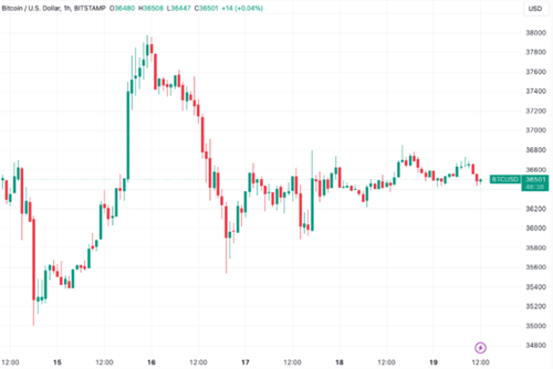 根据Cointelegraph Markets Pro和TradingView的数据,BTC/USD目前的交易价格为36,500美元,整个周末都处于横盘整理状态。