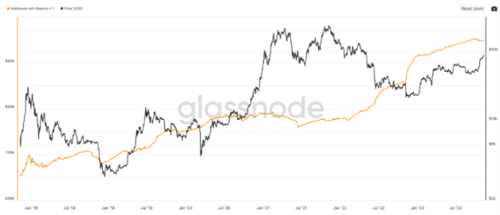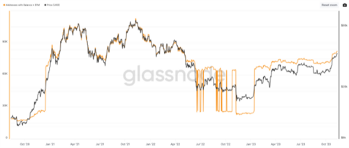 比较的 数据 来自GalSLOT节点的数据显示,在2021年11月上一次牛市高峰期,比特币所持地址超过100万美元,11月公布了创纪录的111573个地址。2021年11月9日n,比特币前一天创下历史新高,价值69000美元。2021年10月。