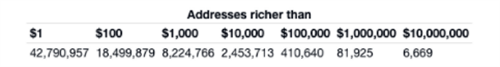 百万富翁的钱包并不是一对一的个人用户,因为拥有超过100万美元BTC的许多地址都属于密码交易所和金融机构。