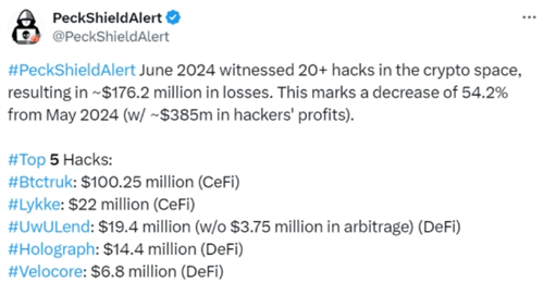 这一系列数据表明,尽管加密资产领域在6月份取得了一定的安全进展,但整体安全形势仍然严峻。中央化交易所和去中心化协议都需要进一步加强安全防护措施,以应对日益复杂的黑客攻击。同时,投资者也应提高警惕,选择安全可靠的平台进行交易和存储加密资产。