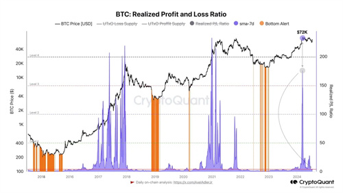 除此之外,另一位分析师指出,实现损益率指标已经下降,处于数月低点。该指标用于衡量市场情绪,主要受任何时间点的盈亏影响。