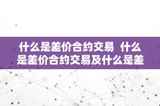 什么是差价合约交易 什么是差价合约交易及什么是差价合约交易方式