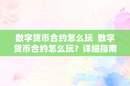 数字货币合约怎么玩 数字货币合约怎么玩?详细指南及策略分享