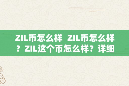 ZIL币怎么样 ZIL币怎么样?ZIL这个币怎么样?详细分析