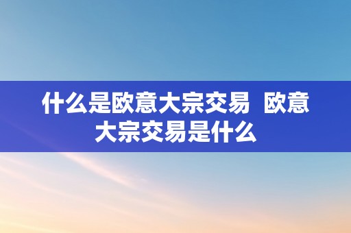 什么是欧意大宗交易 欧意大宗交易是什么