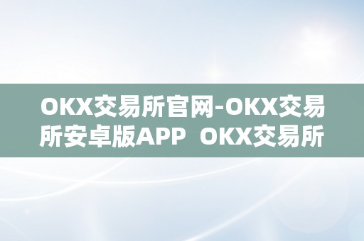 OKX交易所官网-OKX交易所安卓版APP OKX交易所官网-OKX交易所安卓版APP及okex交易所官方网站