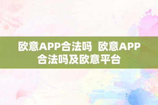欧意APP合法吗 欧意APP合法吗及欧意平台