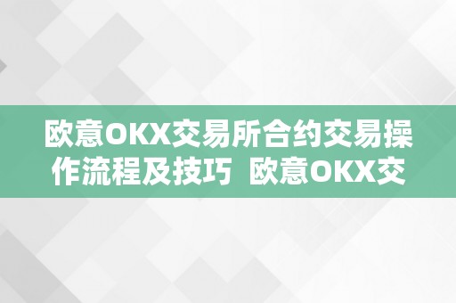 欧意OKX交易所合约交易操作流程及技巧 欧意OKX交易所合约交易操作流程及技巧