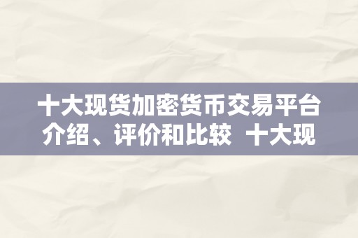 十大现货加密货币交易平台介绍、评价和比较 十大现货加密货币交易平台介绍、评价和比较