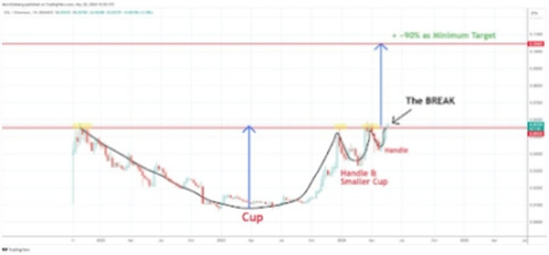 哈佩尔和阿勒曼通过他们共同的X账户(@Negentropic)强调了SOLETH图表上的“清晰的杯柄模式”,这表明索拉纳将从目前的价格水平上涨90%。他们还指出,SOLETH比率已经盘整了一段时间,看起来已经准备好向上移动。
